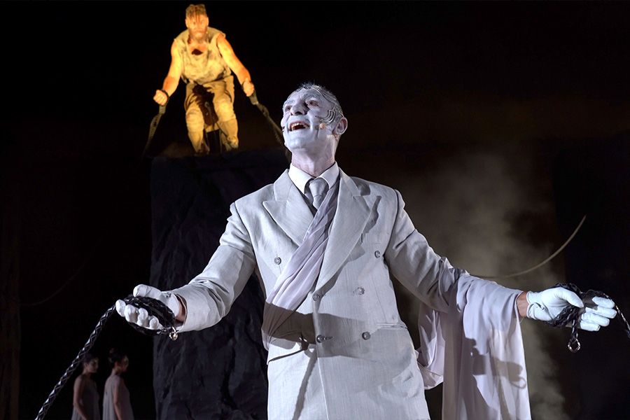 Από την εξαιρετική παράσταση, "Προμηθέας Δεσμώτης" που ανέβηκε στο Φεστιβάλ Αθηνών και Επιδαύρου.