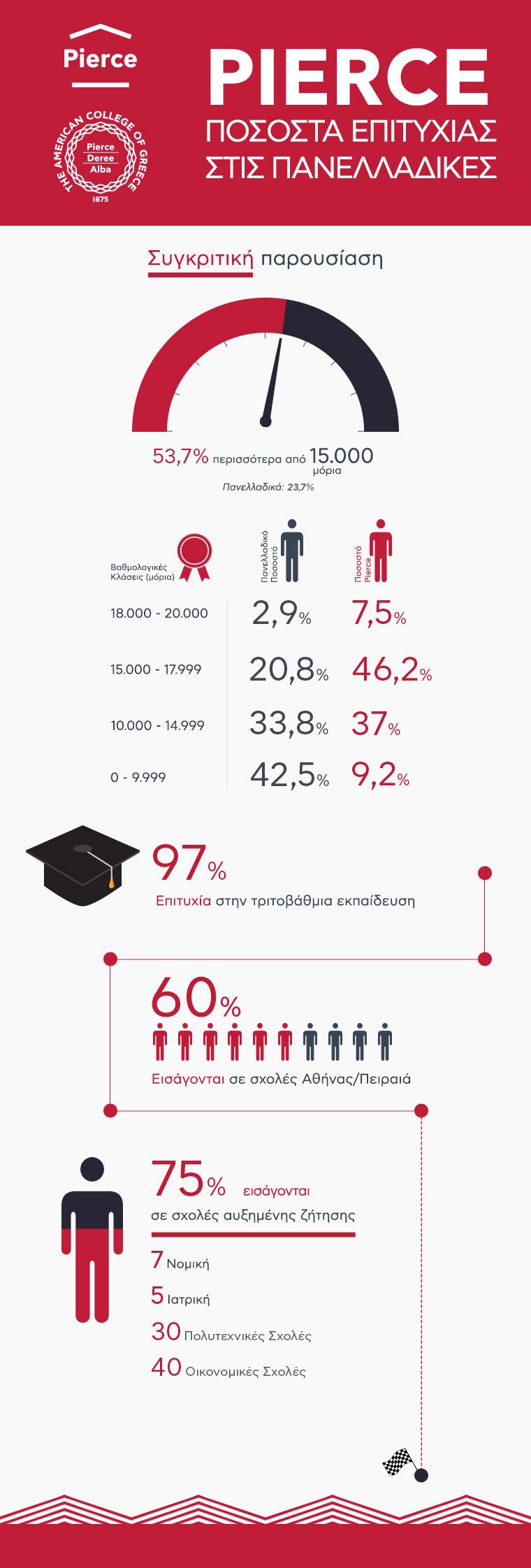 Τρανό παράδειγμα αποτελούν οι διακρίσεις των παιδιών σε διαγωνισμούς και Ολυμπιάδες. Με τη συμμετοχή τους στον Όμιλο Επιχειρηματικότητας Junior Achievement που προβλέπει την ίδρυση και λειτουργία μιας μαθητικής εικονικής επιχείρησης, κατά το πρότυπο λειτουργίας μιας Ανώνυμης Εταιρείας μπορούν να συμμετέχουν σε ελληνικούς και πανευρωπαϊκούς διαγωνισμούς, ενώ η αφοσίωση των παιδιών τους δίνει και τις σχετικές διακρίσεις όπως η προ διετίας 4η θέση στην Ολυμπιάδα Ρομποτικής που έλαβε η ομάδα του Pierce.
